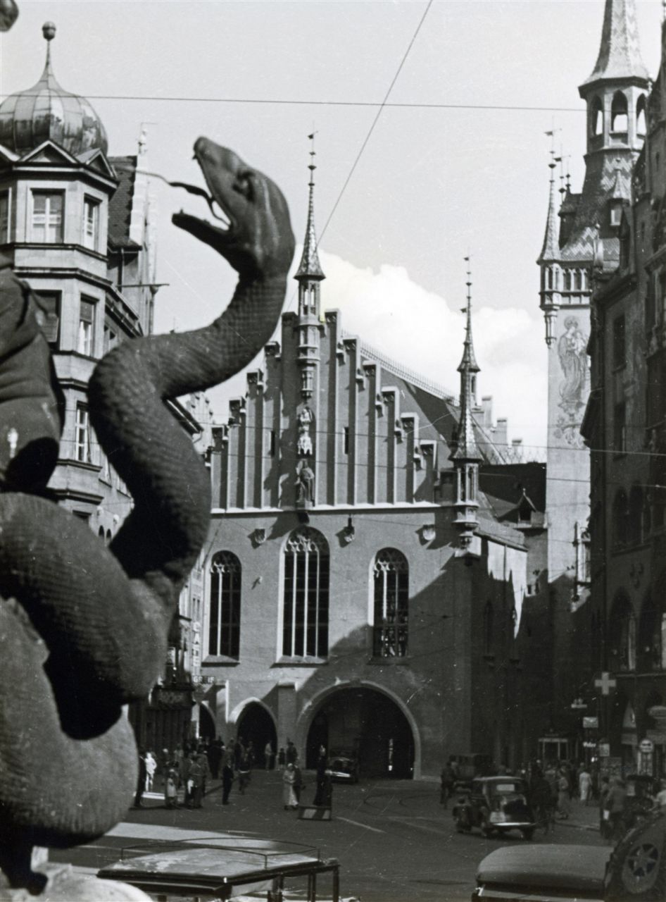 Die Schlange an der Mariensäule, im Hintergrund das Alte Rathaus