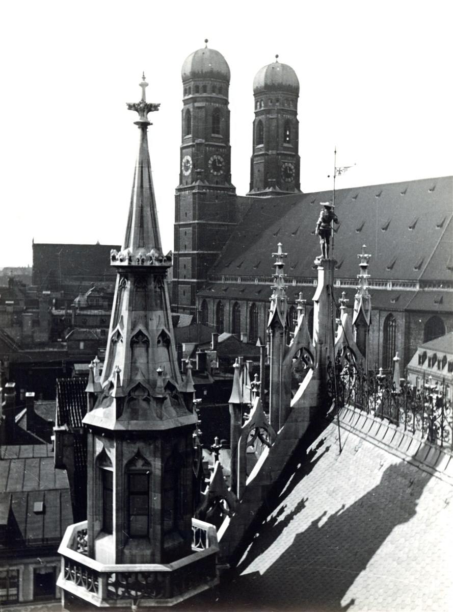 Frauenkirche mit Dachspitzen des Neuen Rathauses