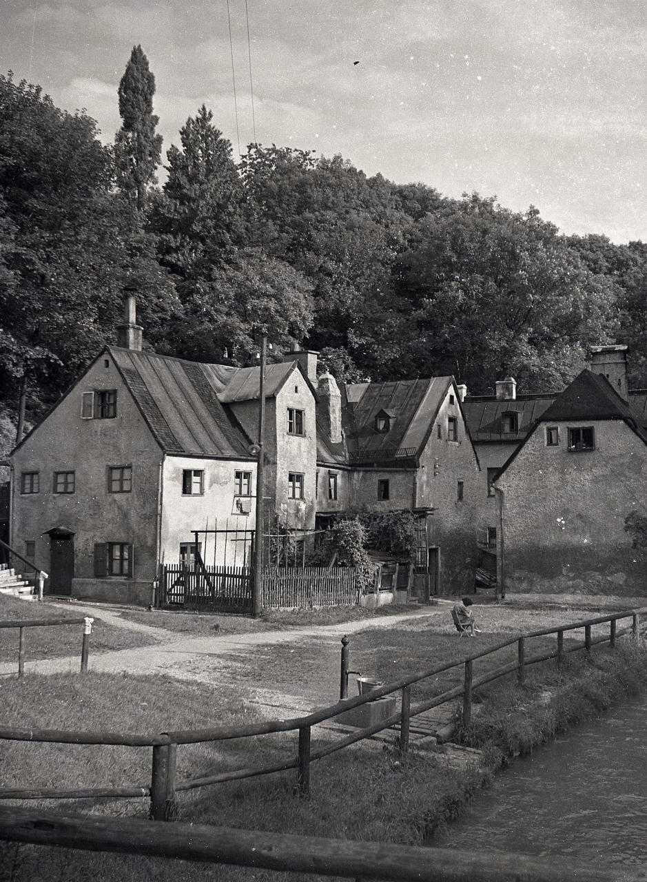 Bürgerhäuser an der Quellenstraße 51 bis 53 unterhalb der Hochstraße. Sie standen noch bis in die späten 1950er Jahre.