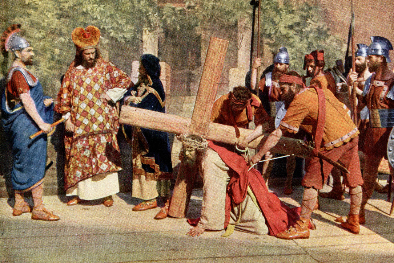 Reproduktion des Motivs aus der offiziellen farbigen Postkarten-Serie (II) der Passionsspiele Oberammergau 1922